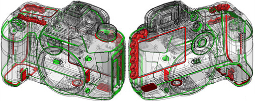 Im Einklang mit seiner XD Bezeichnung, teilt die 7D die gleiche ausgiebig verschlossenen Magnesium Konstruktion wie der 5D Mark II. Canon wieder behauptet, den gleichen Grad an Feuchtigkeit und Staub Widerstandsfähigkeit wie der EOS-1N Profi-SLR-Film aus den 1990er Jahren.