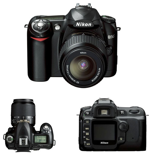 Der 6-Megapixel-Sensor (der gleiche wie in der Nikon D70s) erlaubt Bilder mit einer maximalen Größe von 3008 x 2000 Pixeln. Die Bilder können entweder verlustbehaftet als JPEG mit 24 Bit Farbtiefe oder verlustfrei als proprietäres RAW (Nikon benutzt dabei sein eigenes .NEF-Format) mit 36 Bit Farbtiefe abgespeichert werden. Eine Kombination des gleichzeitigen Abspeicherns von RAW und JPEG ist ebenso möglich, hierbei steht für das JPG allerdings nur die Basis-Qualitätsstufe zur Verfügung. Als Speichermedium wird bei der D50 ausschließlich der SD-Speicherchip verwendet.